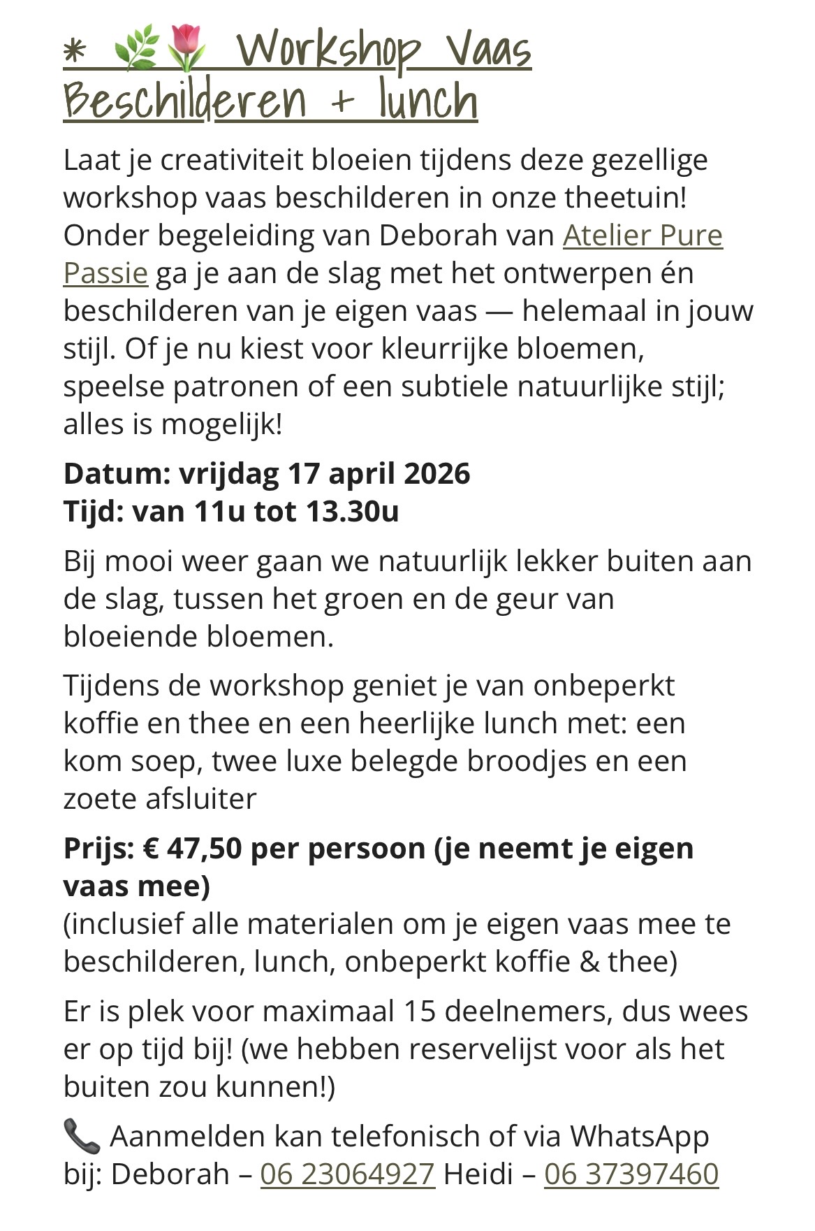 Vrijdag 17 april 2026 - Workshop Vaas beschilderen & Lunch bij Theetuin aan de Bosrand.