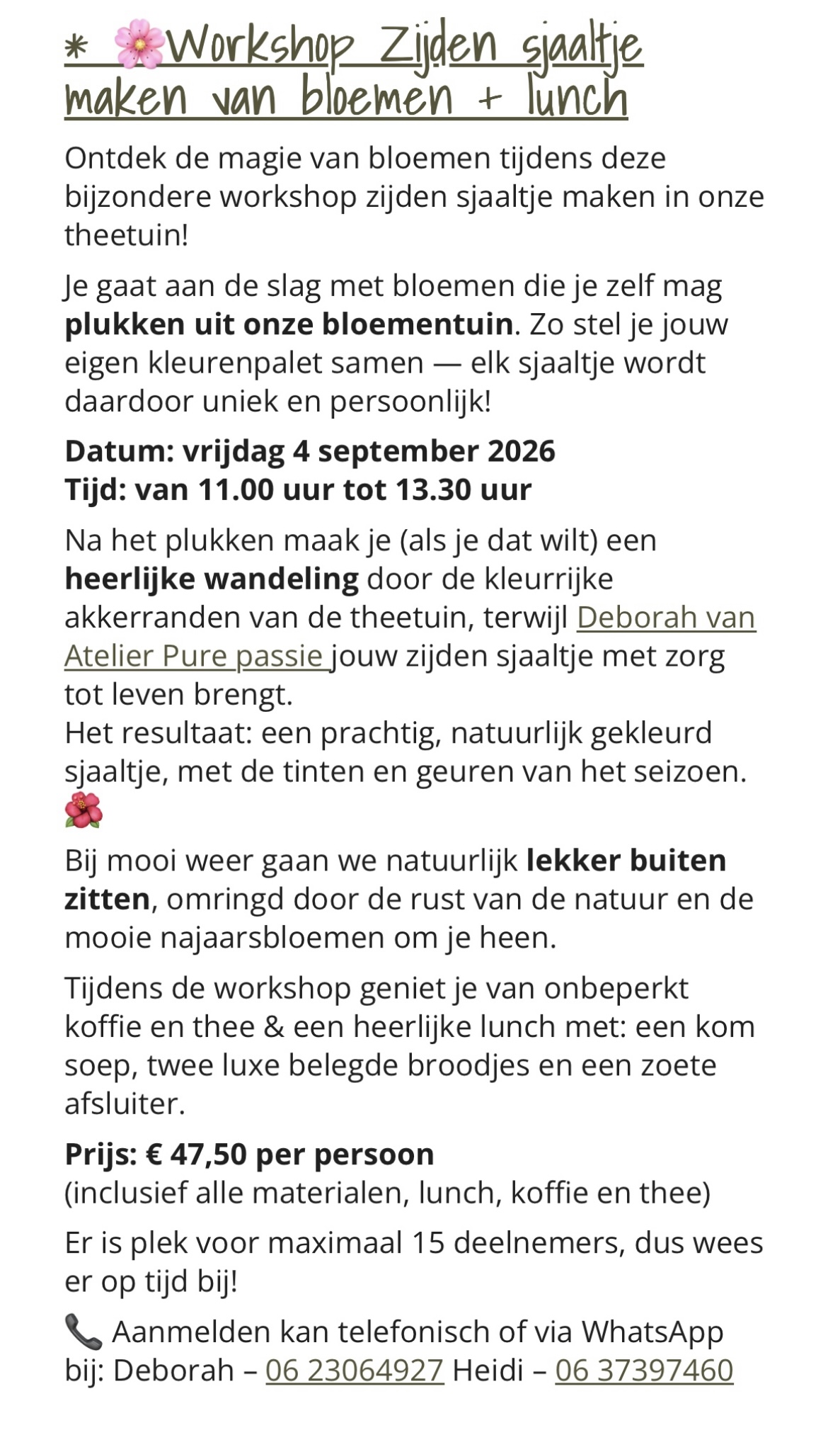 Opgeven via atelierpurepassie@gmail.com of WhatsApp 06.23064927
