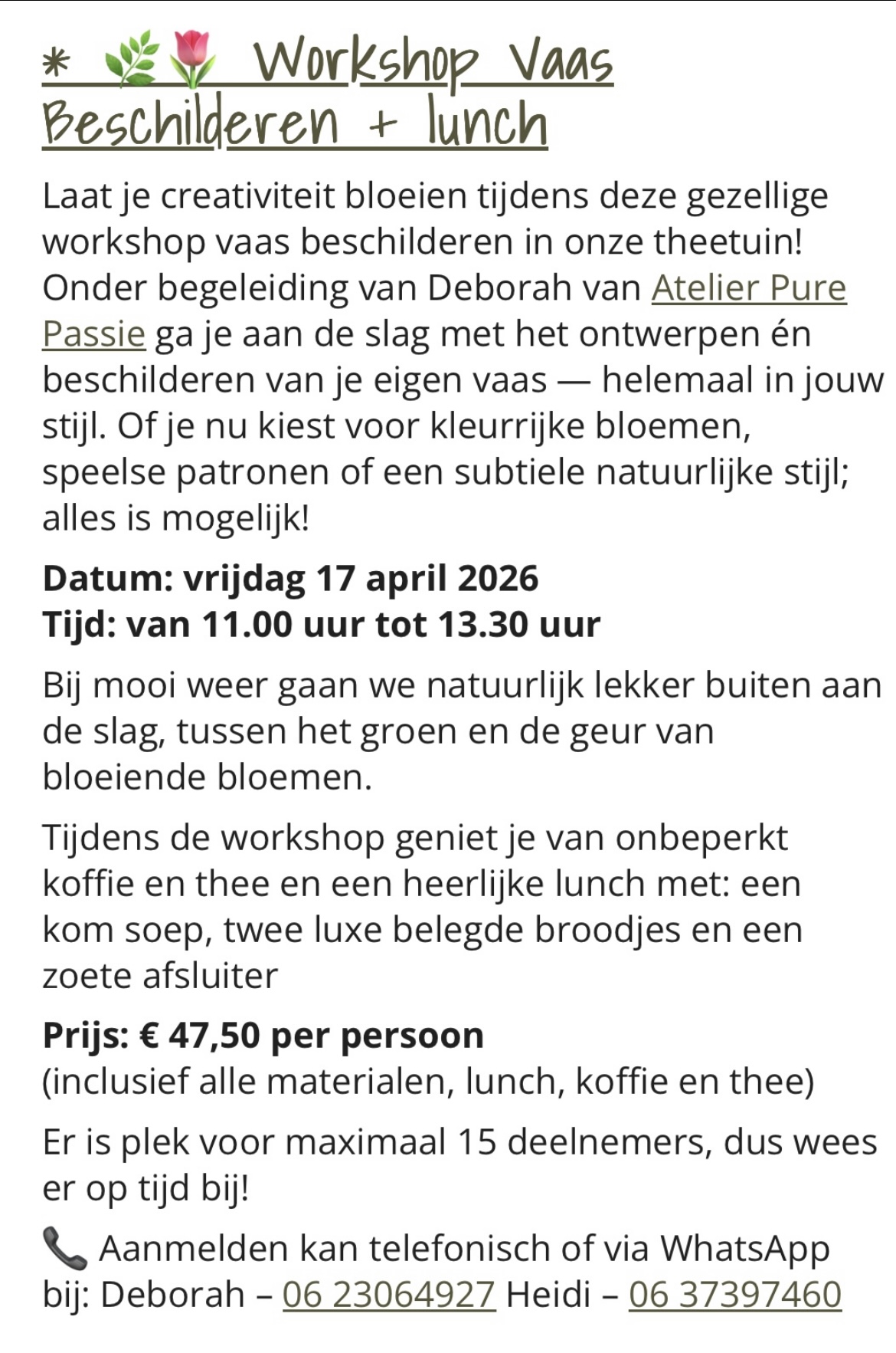 Vrijdag 17 april 2026 - Workshop Vaas beschilderen & Lunch bij Theetuin aan de Bosrand.